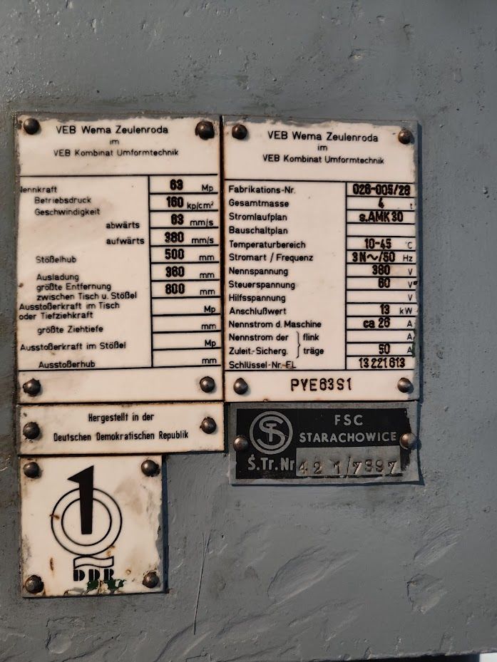 Prensa hidráulica c quadro WMW ERFURT PYE 63 S1